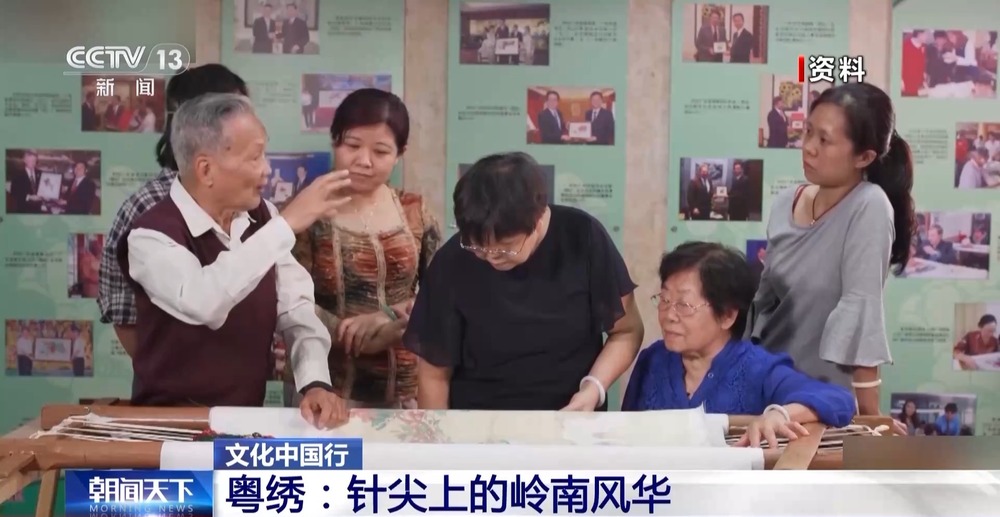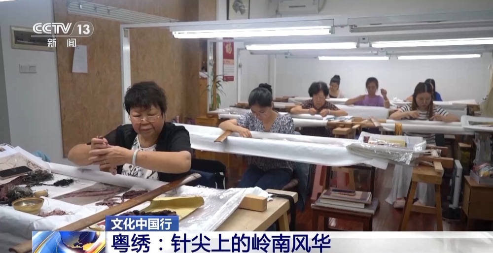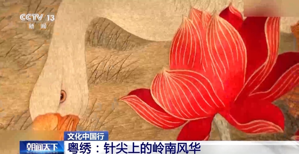 在广州市的粤绣传承基地——广州绣品工艺厂,一幅幅绣品佳作逐个陈设;其间不少绣品原画均出自当今岭南画派画家的画作。
